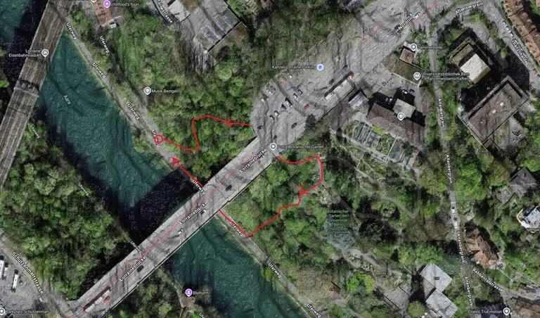 Uferweg unterhalb der Lorraine-Brücke, Abzweigung zur «Füüri»: https://maps.app.goo.gl/t8rGZ7ujJUdhFRDe8